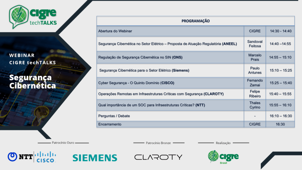 • Segurança Cibernética para o Setor Elétrico – Paulo Roberto Antunes de Souza Jr – Gerente de Aplicação Digital – SIEMENS;