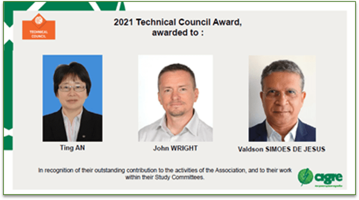 Valdson Simões de Jesus, coordenador do CE-C1, professor da Universidade Estadual de Pernambuco e engenheiro da Eletrobras, recebe o prêmio 2021 Technical Council Award em reconhecimento pela sua grande contribuição às atividades do CIGRE e ao seu trabalho dentro dos Comitês Nacional e Internacional de Estudo C1 – Desenvolvimento de Sistemas Elétricos e Economia.