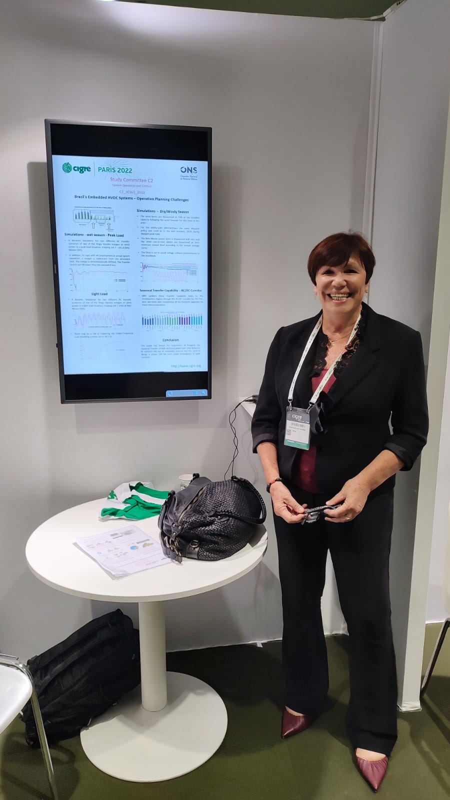 Maria Alzira apresentando o trabalho Brazil's Embedded HVDC Systems -