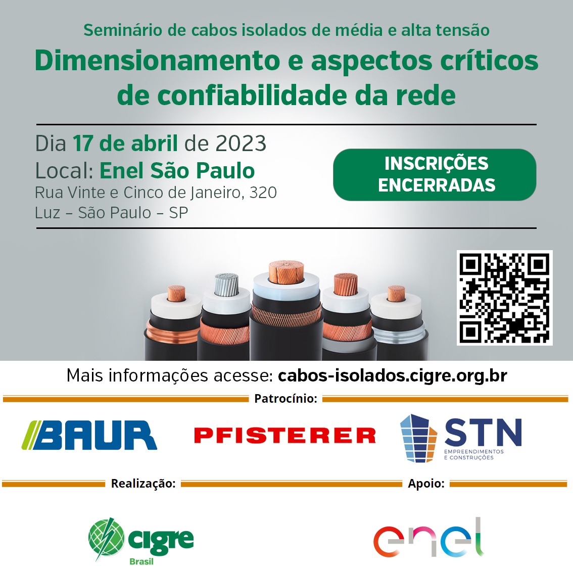 O evento trará aos participantes uma visão atualizada da fronteira do conhecimento no que se refere aos aspectos de projeto e operação de cabos elétricos isolados isolados de média e alta tensão, apresentado por especialistas renomados e de referência no setor.