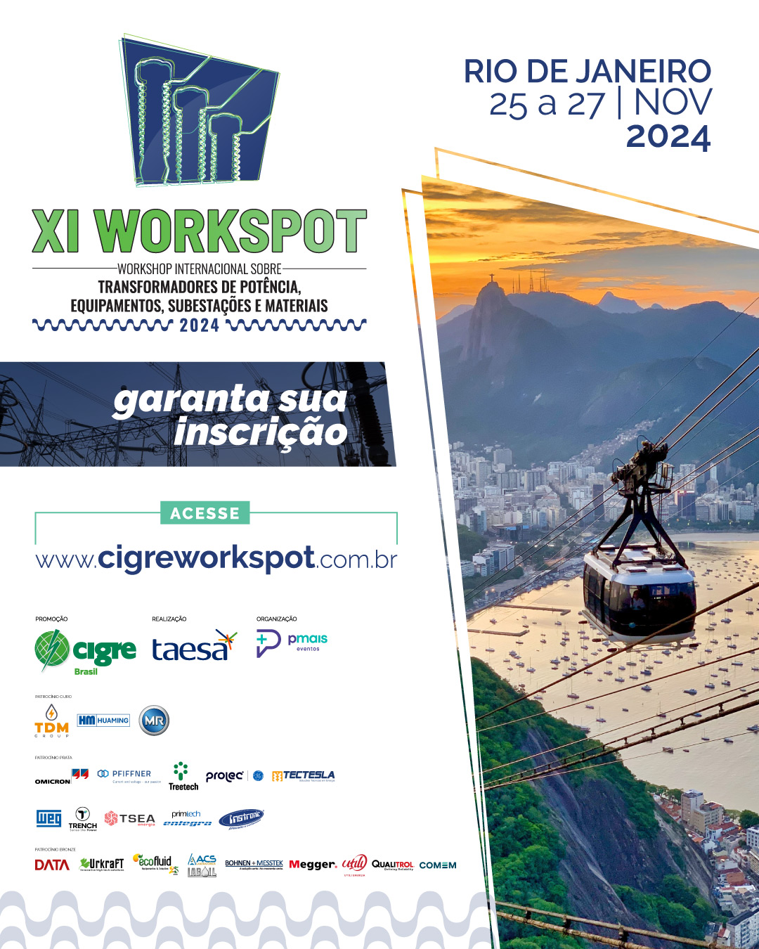 Os Comitês de Estudos (CEs) A2 - Transformadores; B3 - Subestações; A3 - Equipamentos de Transmissão e Distribuição e D1 - Materiais e Tecnologias Emergentes, promovem o XI WORKSPOT - Workshop Internacional sobre Transformadores de Potência, Equipamentos, Subestações e Materiais.