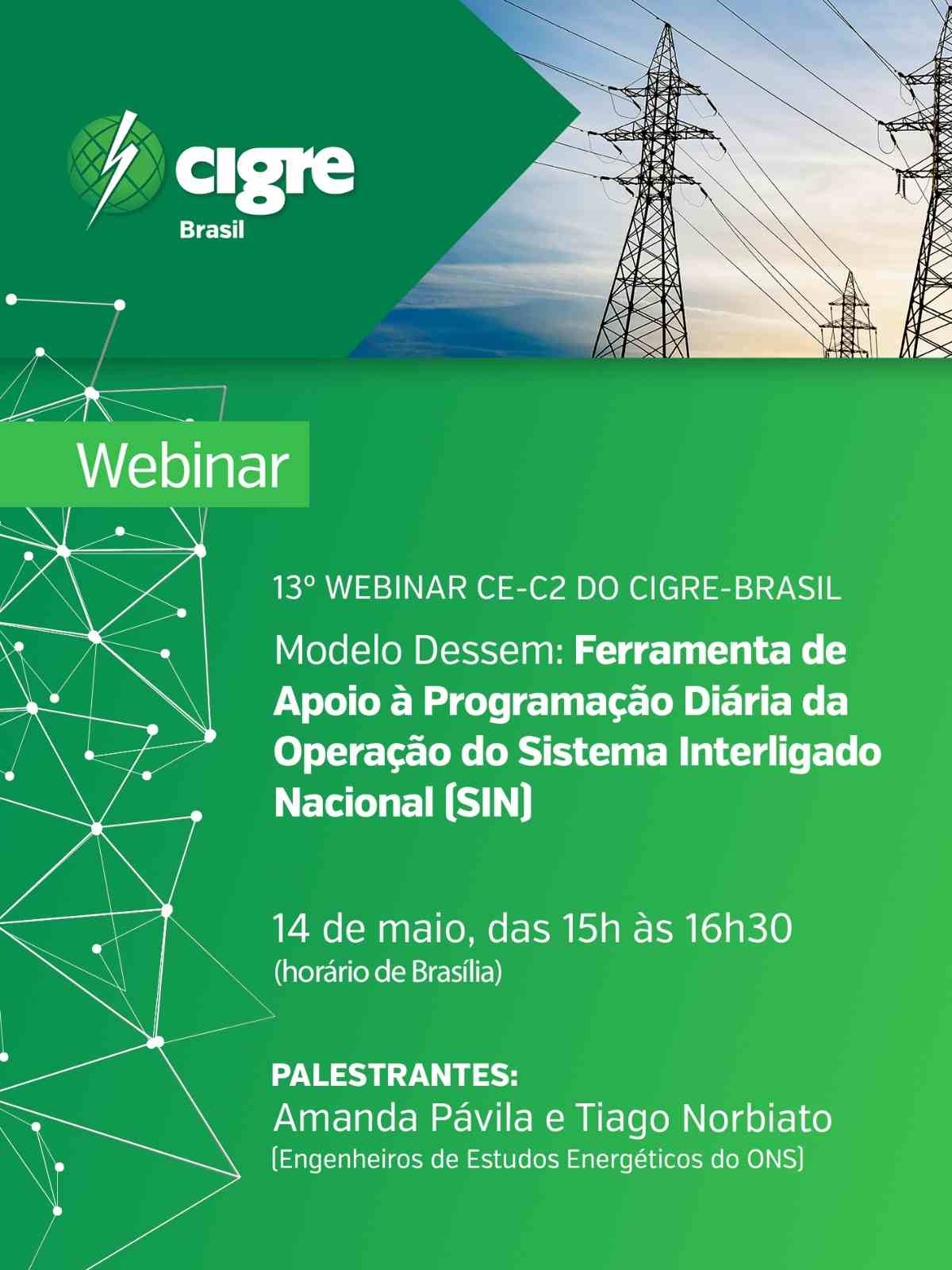 O CIGRE-Brasil promoveu o 13º webinar do Comitê de Estudos CE-C2 – Operação e Controle de Sistemas de Potência. O evento teve como tema o processo de Programação Diária da Operação (PDO) e o papel do modelo DESSEM como ferramenta de apoio à gestão eficiente dos recursos energéticos no Brasil.