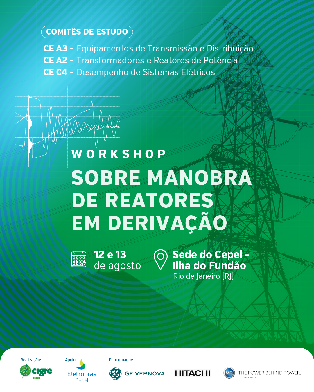 O Workshop sobre Manobra de Reatores em Derivação é uma iniciativa dos Comitês de Estudos CE A2 – Transformadores e Reatores de Potência; CE A3 - Equipamentos de Transmissão e Distribuição e CE C4 - Desempenho de Sistemas Elétricos - a ser realizada nos dias 12 e 13 de agosto, na capital carioca, Rio de Janeiro, com o apoio do Cepel.