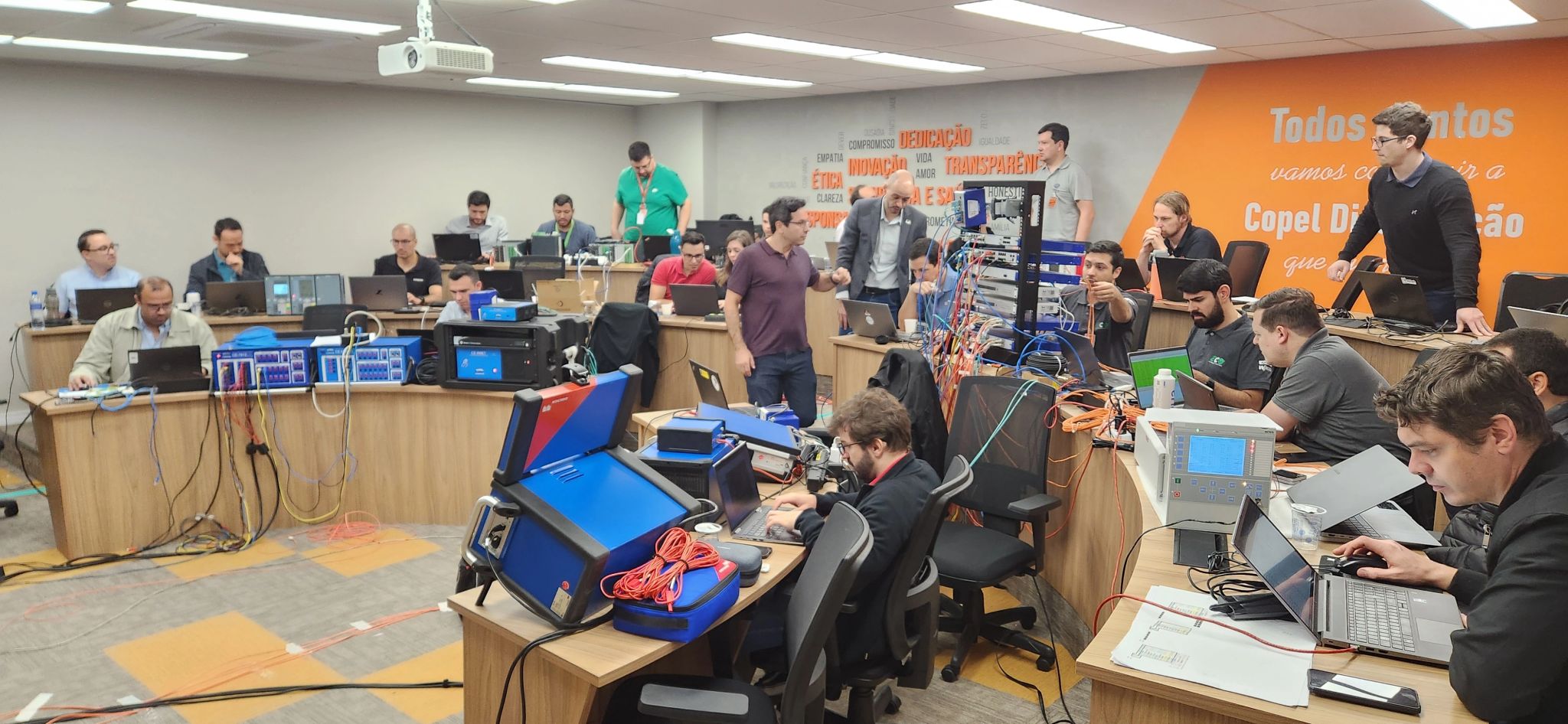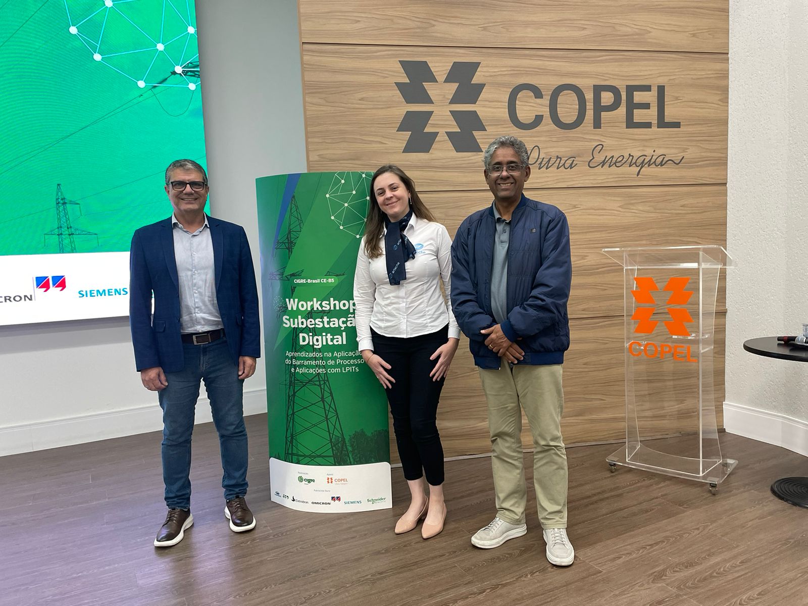 Dessa vez, não foi diferente. Para viabilizar o êxito do workshop, nossos parceiros de missão foram essenciais para esse alcance. além da Copel, que cedeu o espaço, estiveram presentes: CONPROVE, ECO AUTOMAÇÃO, INGETEAM, HITACHI, OMICRON, SCHNEIDER e SIEMENS.