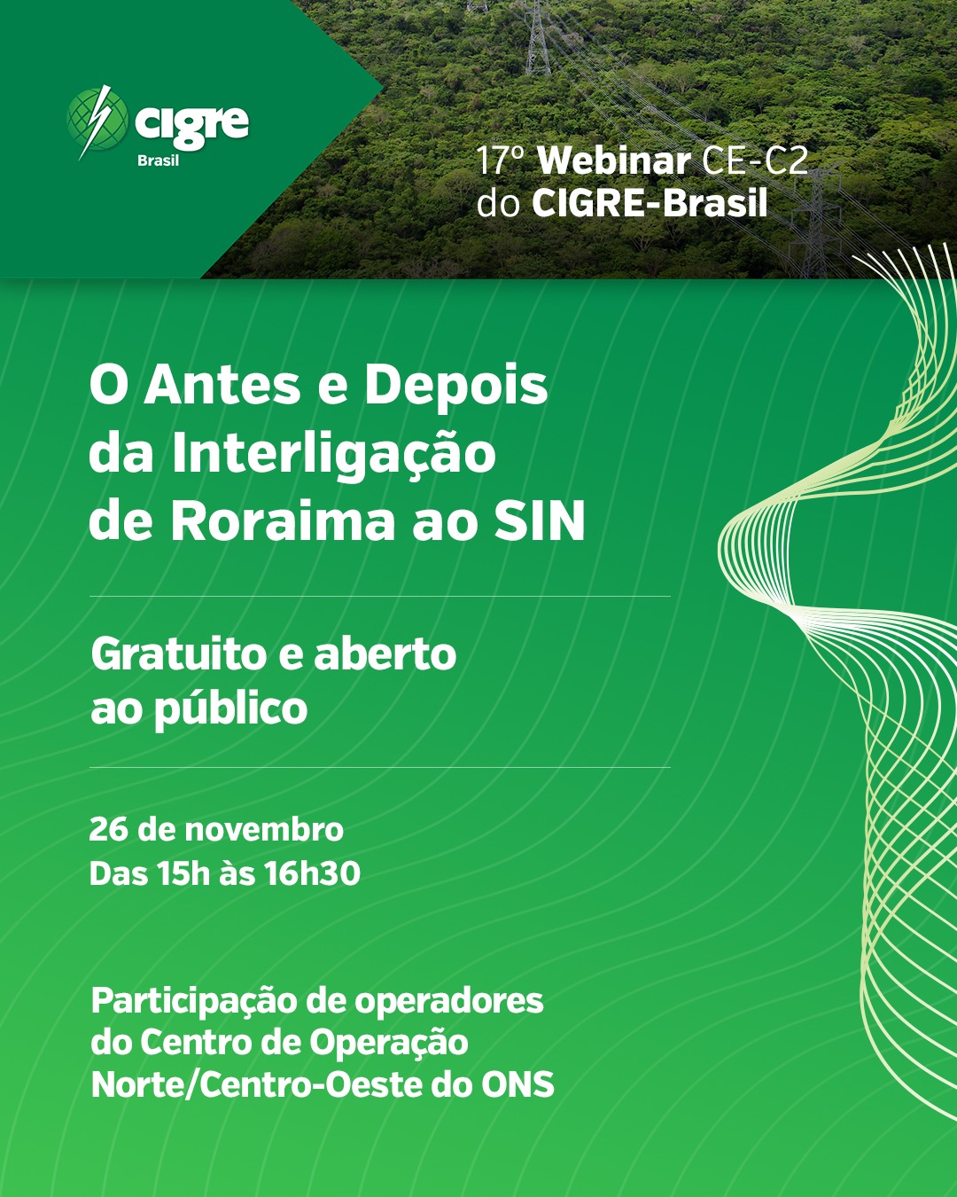 O Comitê de Estudos C2 (CE C2) - Operação e Controle de Sistemas de Potência -realizou, no dia 26 de novembro, o 17º webinar – O Antes e Depois da Interligação de Roraima ao SIN, que reuniu profissionais do setor elétrico para discutir os impactos da integração do estado ao Sistema Interligado Nacional. O encontro, transmitido gratuitamente pelo site da entidade, destacou as mudanças operacionais e os benefícios já observados desde a conexão.