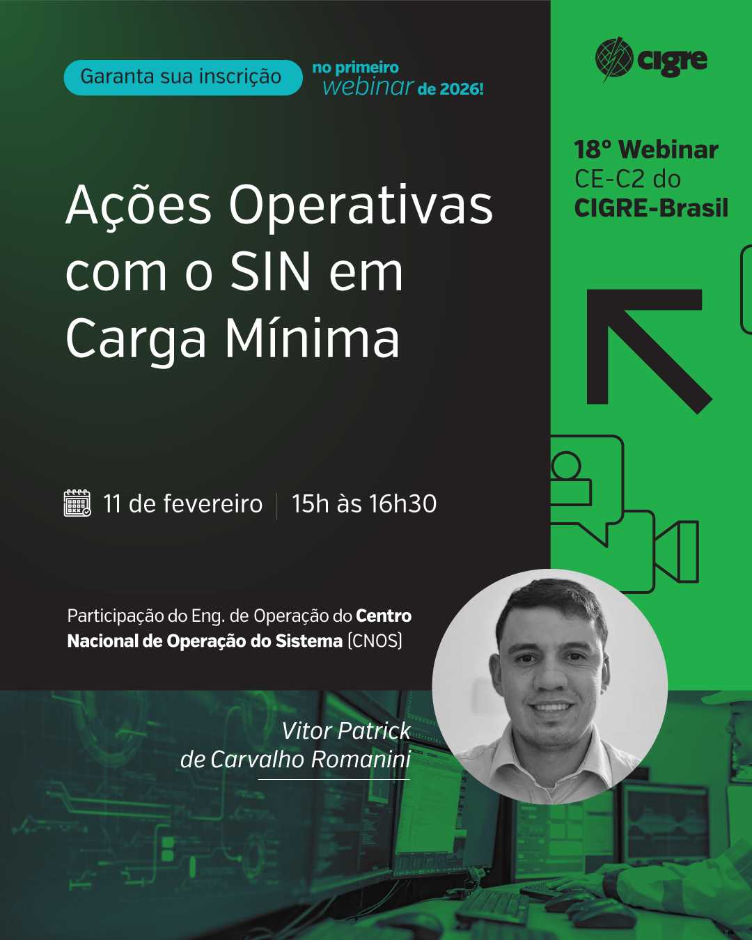 O Comitê de Estudos C2 (CE-C2) – Operação e Controle de Sistemas de Potência realizou, no dia 11 de fevereiro, o seu 18º webinar dedicado à discussão dos desafios enfrentados pelo Operador Nacional do Sistema Elétrico (ONS) em cenários de baixa demanda. O encontro ocorreu de forma gratuita, com transmissão pelo site da entidade, e reuniu profissionais do setor elétrico.